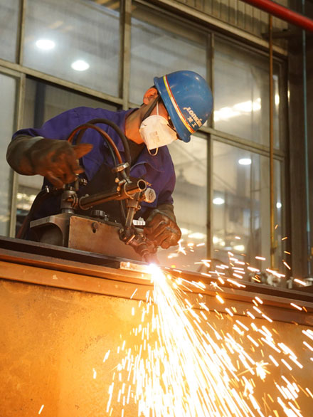 在四川欣汇铖机械有限公司的生产车间内,机器轰鸣。一台台自动化智能化生产设备高速运转。工人们分布在各生产流水线上有序,熟练地忙碌作
